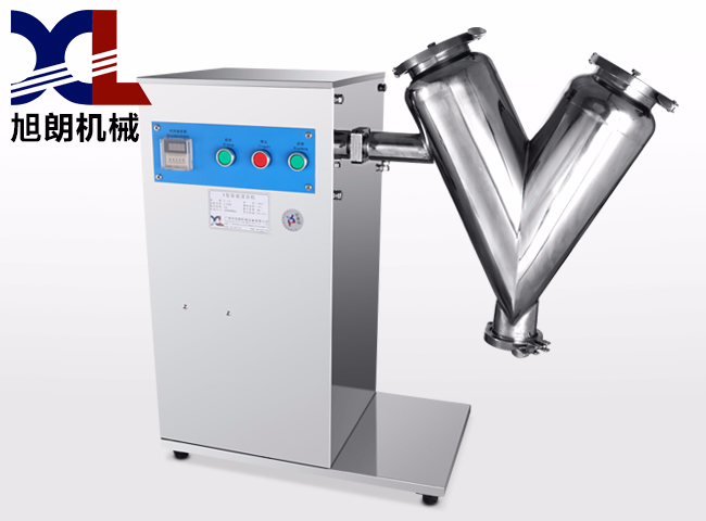 The machine makes the drum cylinder rotate by reducer motor and makes use of asymmetry of two cylindrical different lengths forming of the mixer to mix.When the mixer runs,the materials change from decomposition to combination.Due to different motion energy,it will produce horizontal force to push materials alternating horizontally.While the materials work from combination to decomposition,due to different surface of materials,it will produce horizontal force to push materials alternating horizontally.After drum cylinder rotates a circle, approx 25% materials flow from one drum to the other one.Simultaneously,when the drum cylinder rotates,it will produce radial force to make the materials flow.Therefore,the materials are decomposed horizontally and radially,alternately combined.In the end,it will make the materials approach very uniform mixing effect.